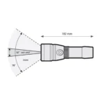 La batterie peut être rechargée via un câble USB connecté à un PC, ou tout adaptateur 5 volts. Le chargeur de batterie avec indicateur de charge LED permet de voir facilement la charge réelle. La poignée tubulaire permet d’utiliser la torche d’une seule main.