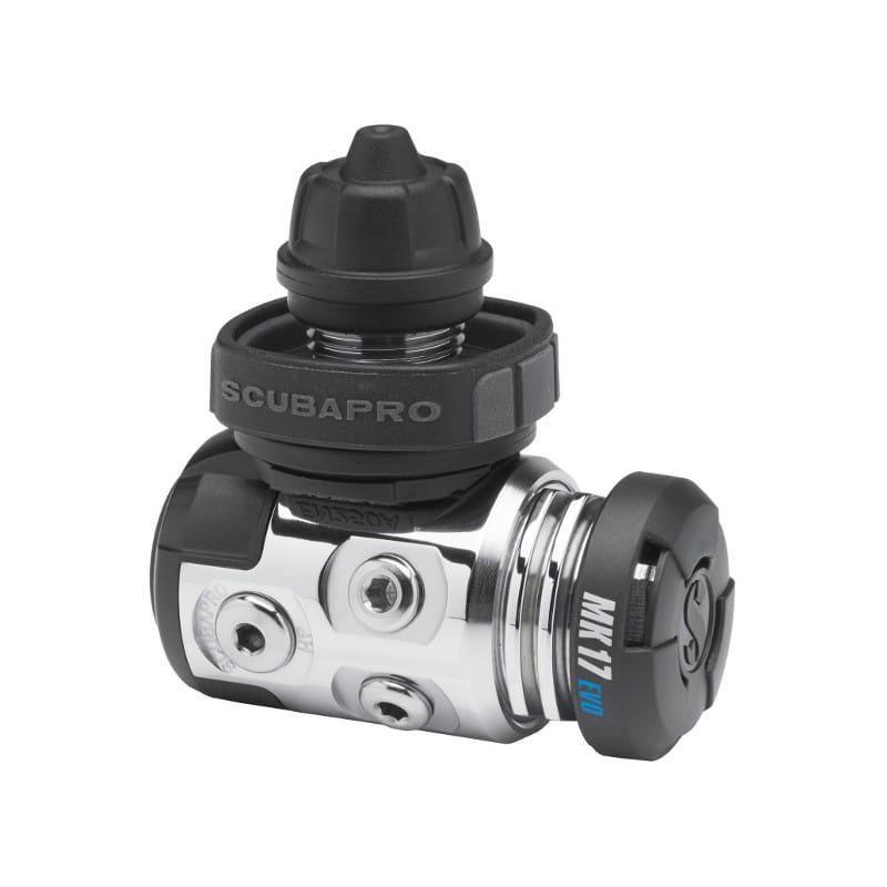 Le détendeur MK17 EVO/C370 combine le premier étage à membrane haut de gamme de SCUBAPRO et son deuxième étage compensé. Le MK17 EVO résiste parfaitement aux éléments et garantit ainsi une utilisation sans faille dans l’eau, aussi froide et trouble soit-elle. Sa conception interne repensée permet un meilleur débit d’air aux sorties BP, eux-mêmes reconfigurés pour une meilleure organisation des flexibles. Le C370 dispose des meilleures caractéristiques de son prédécesseur, mais intègre désormais un clapet compensé. Son déflecteur contribue à une amélioration de l’effort respiratoire. C’est un détendeur intelligent qui convient à tout type de plongée.