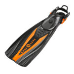 • Hydrodynamique : Les nervures latérales en caoutchouc canalisent l’eau sur toute la longueur de la palme pour réduire la traînée et maximiser l’efficacité de votre coup de pied.