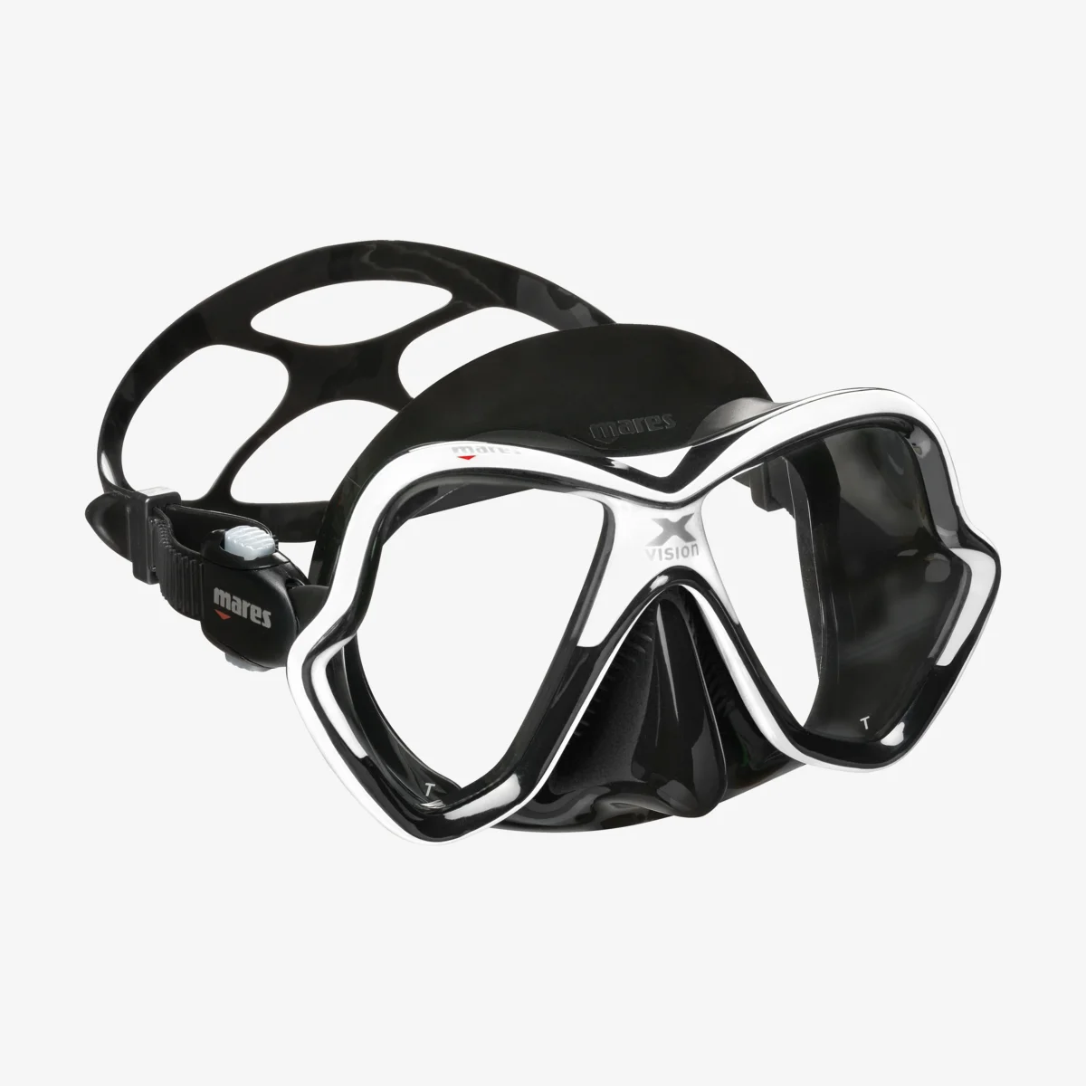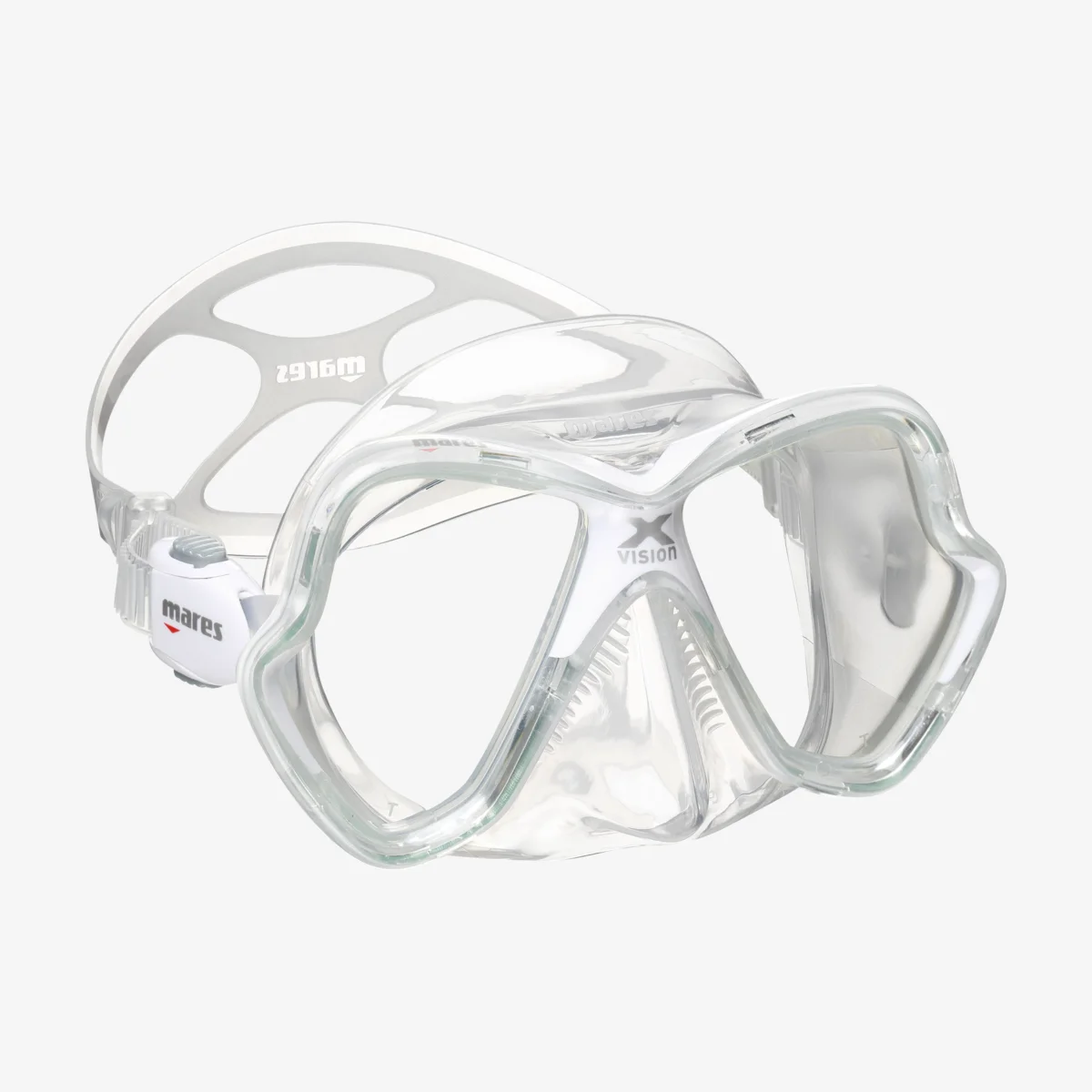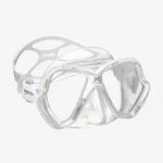 Le masque de plongée X-Vision est fabriqué en silicone ultra-clair. La zone nasale comporte de petites nervures qui servent à soulager la pression et à rendre l’appareil plus confortable à utiliser pendant plus longtemps. Le design est hydrodynamique et offre un champ de vision 20% plus large que la version précédente. Les verres peuvent être remplacés par des verres optiques.
